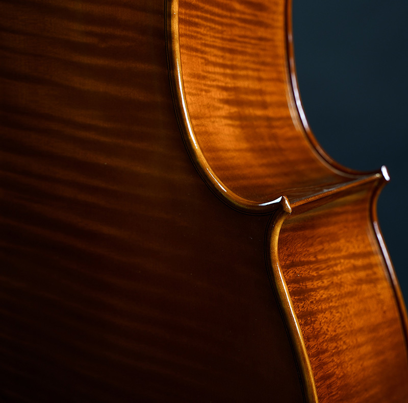 這款大提琴面板選用了俄羅斯云杉木,木質(zhì)上佳,材料非常干燥,一塊震動(dòng)傳導(dǎo)充分的面板是確保提琴聲音的關(guān)鍵之一,俄羅斯地處偏寒地帶,云杉樹木生長(zhǎng)穩(wěn)健厚實(shí),造就音質(zhì)深沉而渾厚。背板側(cè)版采用精選的云南楓木,用料扎實(shí),全線符合標(biāo)準(zhǔn)斯式琴的板材厚度,板材含水率均在6%以下,經(jīng)過多年的自然風(fēng)干,保證了樂器音質(zhì)穩(wěn)定且長(zhǎng)久的共鳴。這樣的工藝流程不僅保證樂器擁有卓越的表現(xiàn)力,還會(huì)隨著時(shí)間的推移愈加展現(xiàn)其獨(dú)特魅力。